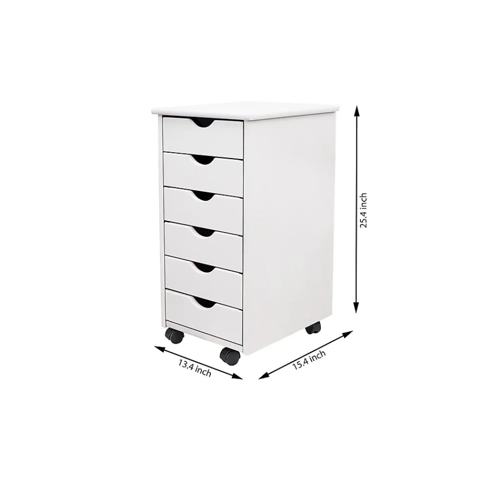 This six-drawer roll cart on wheels features deep drawers to hold reams of paper or drills. Perfect for project rooms, kitchens, garages, offices, or end tables.