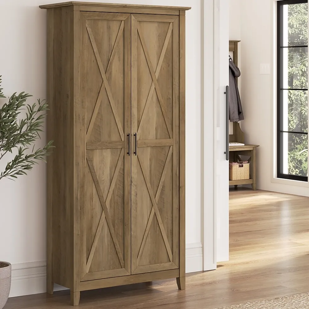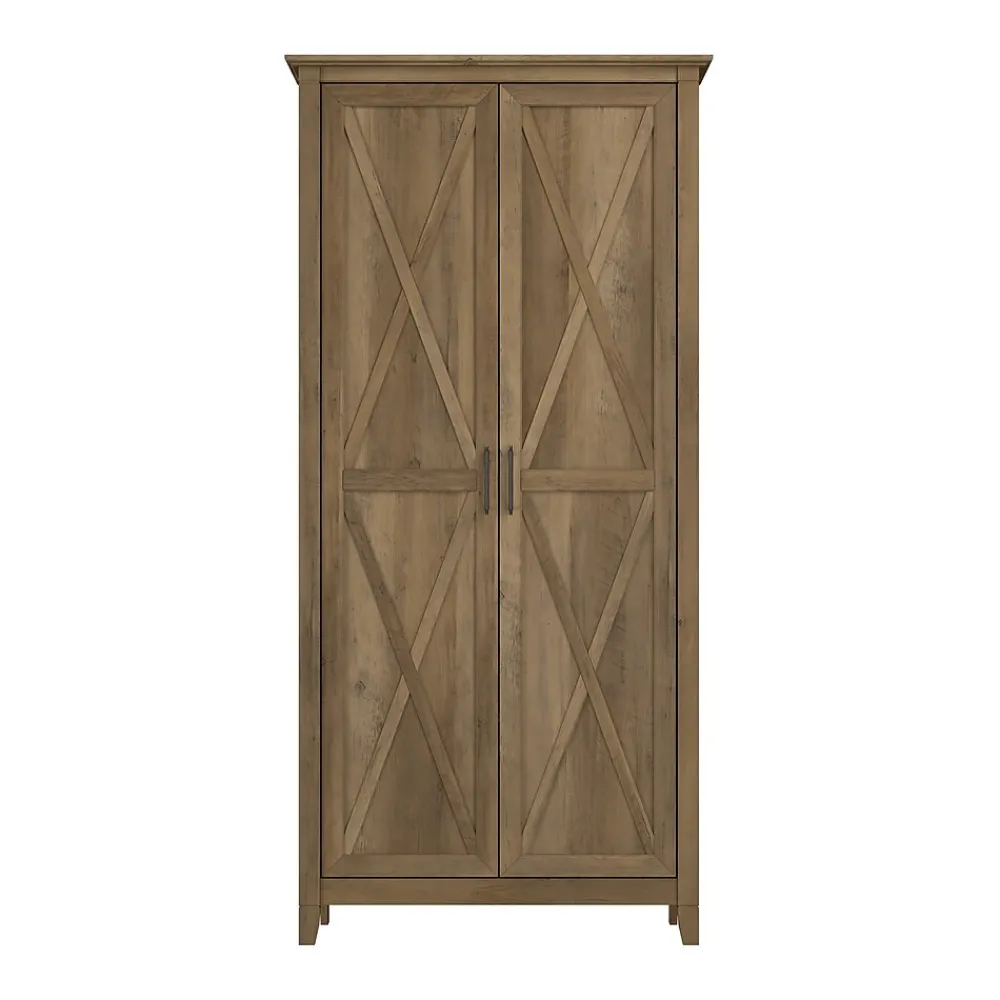 The Bush Furniture Key West Tall Storage Cabinet with Doors and Shelves offers an organization solution that brings a touch of casual style to any residential space. Featuring a design that’s as versatile as it is practical, this 2 door farmhouse cabinet provides an ideal way to store important work materials, a collection of books or other media, miscellaneous household items and more. Two shelves are fixed for stability while three can be raised or lowered to accommodate items of various sizes. Each shelf supports up to 25 pounds, so storing larger materials and equipment is never a problem. The stable design also includes wall attachment hardware for family-friendly safety in any home office or living space. This tall accent cabinet with doors has been meticulously tested to meet or exceed industry standards for safety and performance and is backed by a 1 Year Manufacturer’s Warranty.