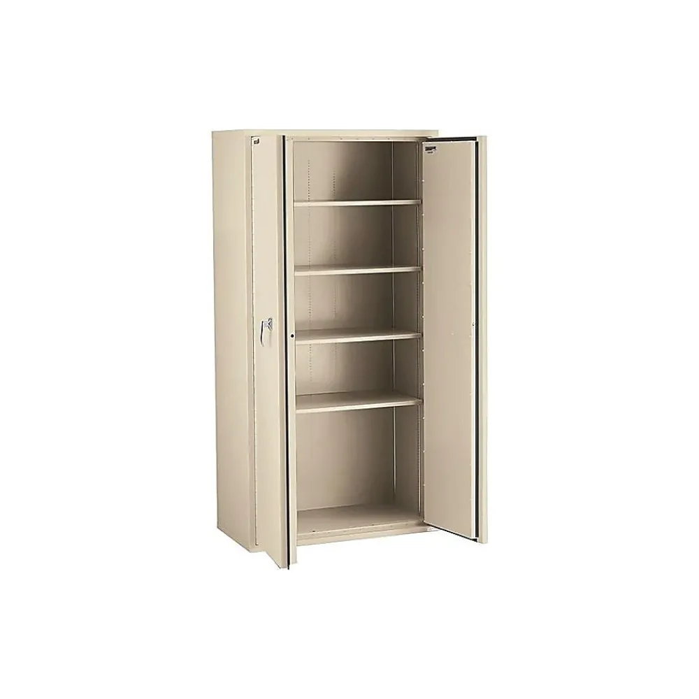Safeguard important documents from fire and theft with this storage cabinet. The Medeco security lock resists picking and drilling, and the keys can only be duplicated through FireKing. Four shelves are adjustable, and each can hold up to 160 pounds. The powder-coated finish resists scratches and dents. This FireKing storage cabinet internal temperature stays below 350 degrees F for at least one hour in a fire.