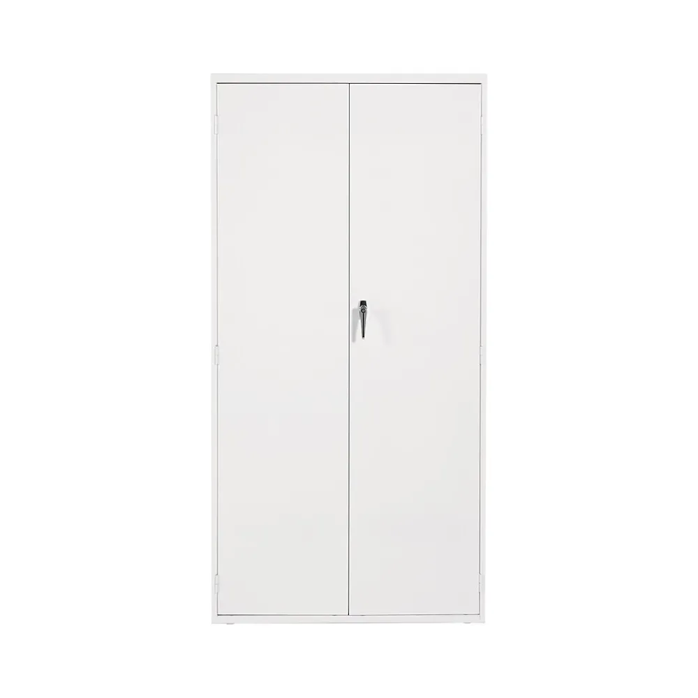 Organize paper, pens, and other office supplies in this Global 9300 Series designer white vertical steel storage cabinet. Secure office supplies and equipment in this steel storage cabinet. It is lockable, so you can monitor access to expensive equipment, and the corners are welded, providing durability. The electrostatically applied coating creates a durable, attractive finish, and the cabinet is 72″ tall to save floor space. This Global 9300 Series storage cabinet has doors that open 170 degrees for easy placement of large items. This large storage cabinet is an optimal solution when you need extra capacity to store more stuff and heavy loads.