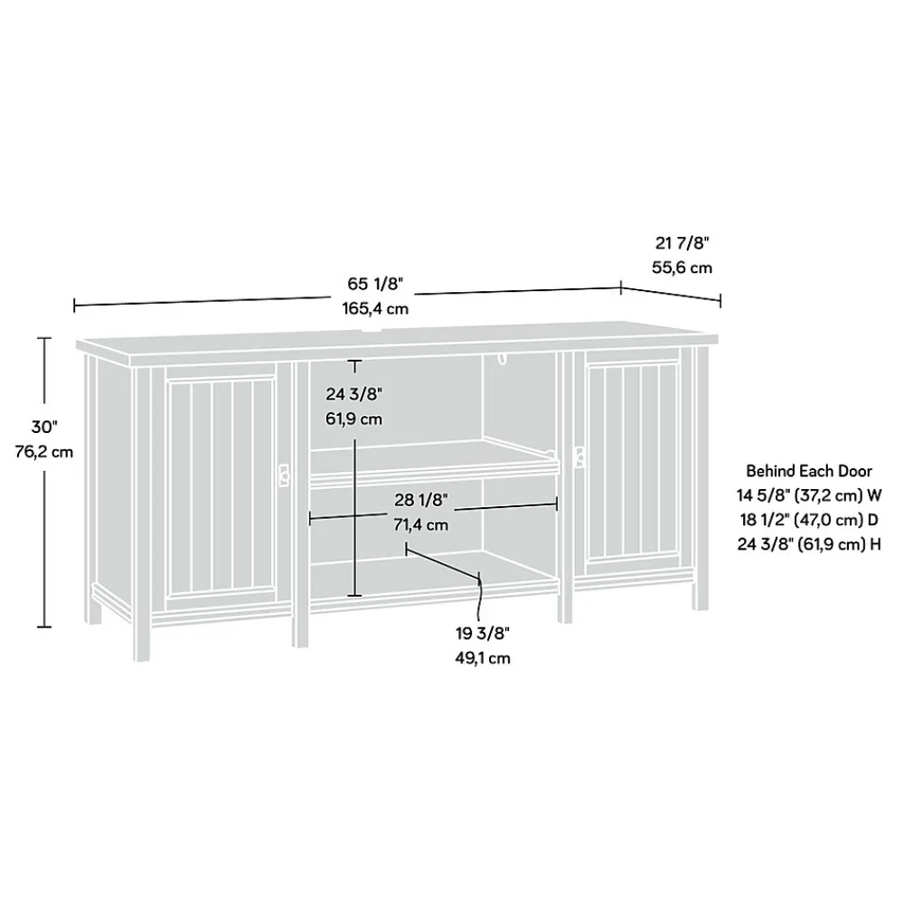 Create a warm and inviting space in your home with help from this cottage-inspired credenza from the Costa collection. It features a durable, 1 thick tabletop surface with ample amount of room for you to showcase and display all your favorite home decor – a vase full of flowers, a decorative clock, picture of the family and even an accent lamp. Behind each door is a hidden area that includes an adjustable shelf for convenient storage of around home essentials. The frame and panel doors feature slat-front detailing to give this credenza its unique coastal style. The center open shelf area includes a pull-out adjustable shelf for easy access and a home for your printer. This also makes a great spot for additional storage and display. It also includes a cord management system with a desktop grommet hole so you can keep all your wires neat and out of the way. Finished in Chalked Chestnut, this stunning credenza will have your home feeling like a cottage retreat.