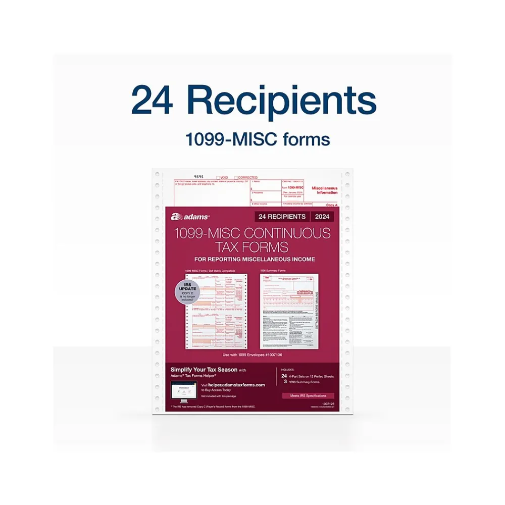 - 2024 IRS change: Copy C has been removed from the 1099-MISC; Adams Tax Forms Helper lets you save digital copies