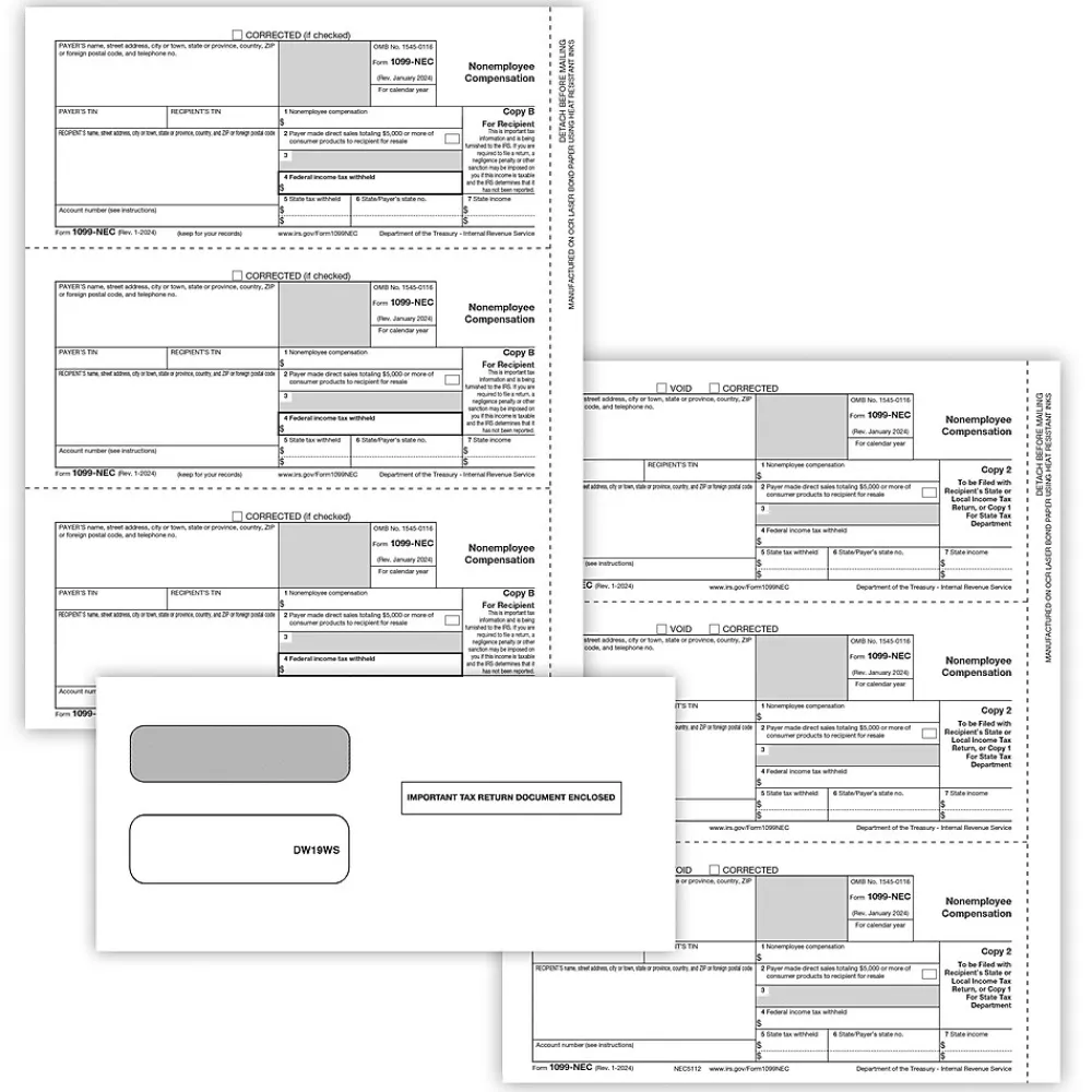 The ComplyRight 1099-NEC recipient-only tax form is designed for organizations that will be required to e-file and therefore will not need Copy A or transmittal forms 1096 or W-3.