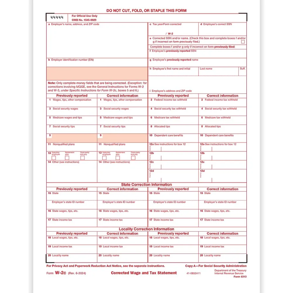| Tax Form Pack Size | W-2C |